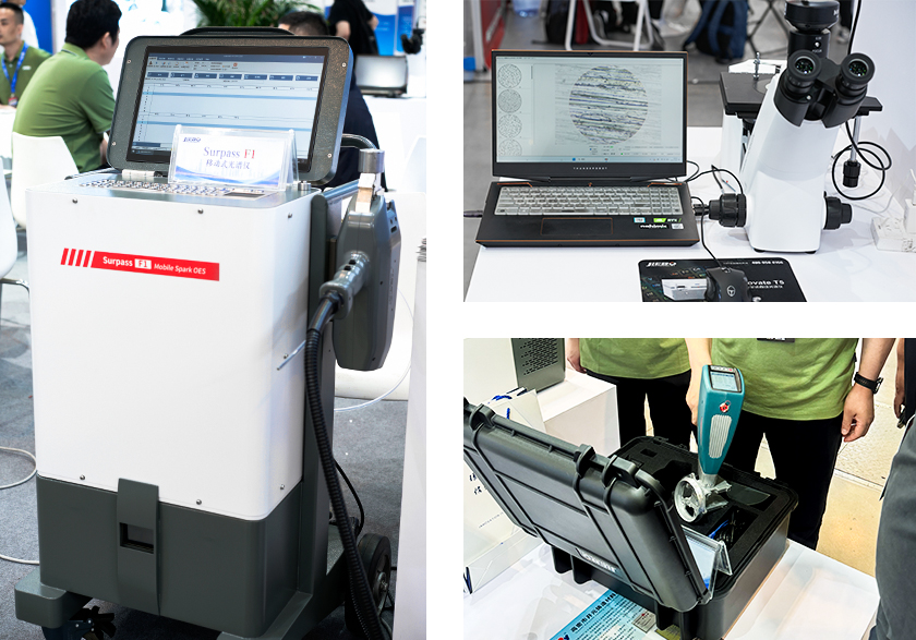杰博仪器展示出的光谱仪在金属和非金属材料检测领域均展现出了强大的实力。无论是痕量元还是高浓度元素,都能准确可靠的分析。为铸造、冶金、生产制造企业提供全面的质量控制方案。其中Surpass F1 移动式光谱仪其灵活的推车式设计,更是满足了不少客户不易切割的大型金属构件的现场分析需求。